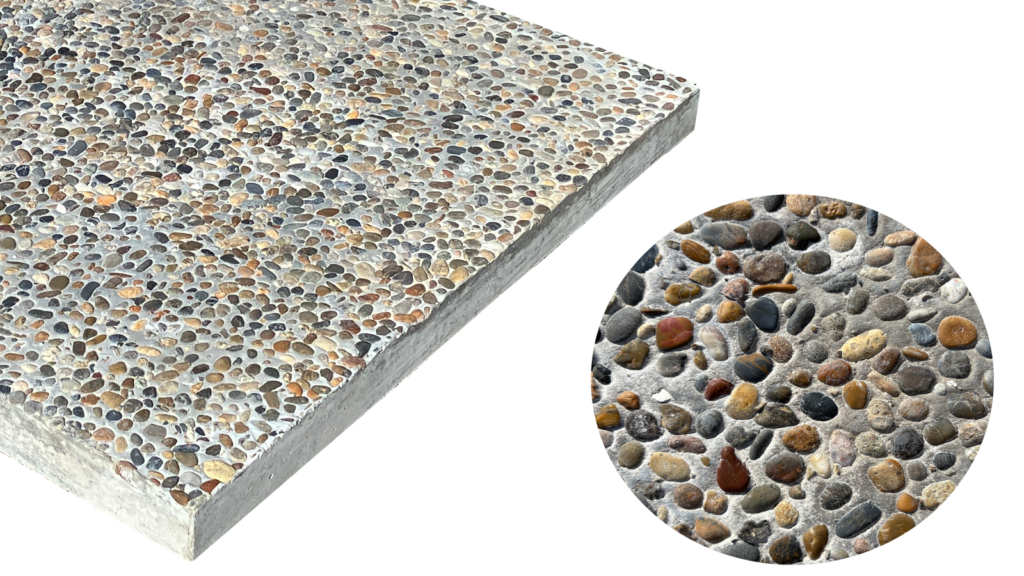 天然石の砕石や豆砂利を種石とした洗い出し平板、玉砂利等の質感がそのまま表面に表現されます
