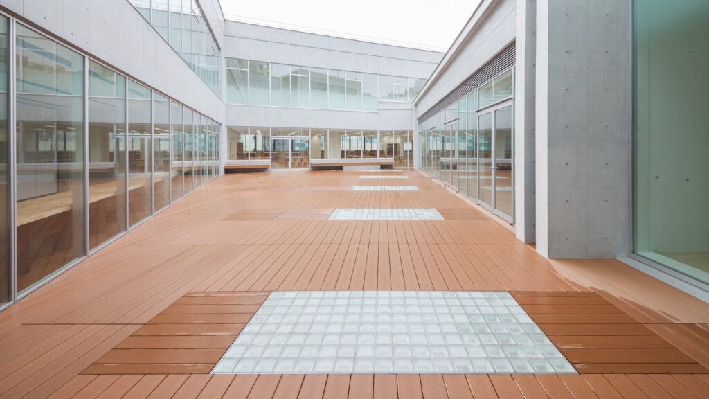 PFウッドパネルは天然木材、PFウッドタイルMとPFリコウッドパネルHは「100%リサイクル原料」*の人工木材でなんじゃ!